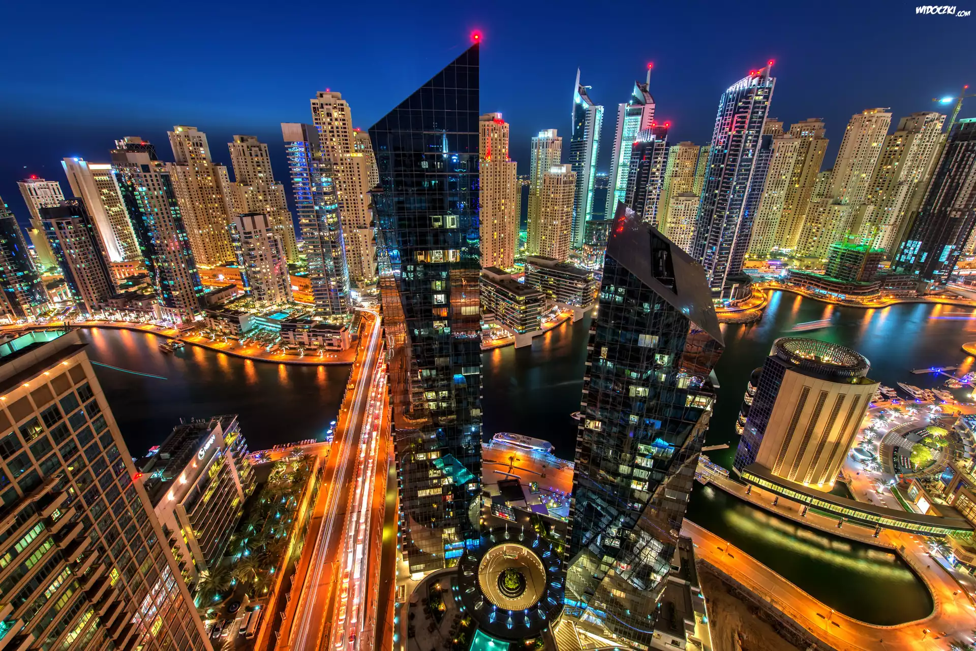 Zdjęcia, Dubaj, Noc, Drapacze chmur, Z lotu ptaka