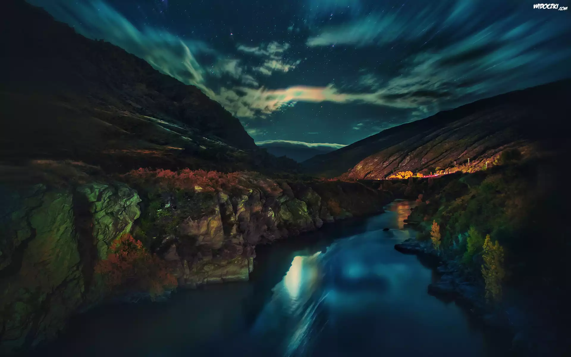 Zdjęcia, Noc, Ciemne, Chmury, Góry, Rzeczka