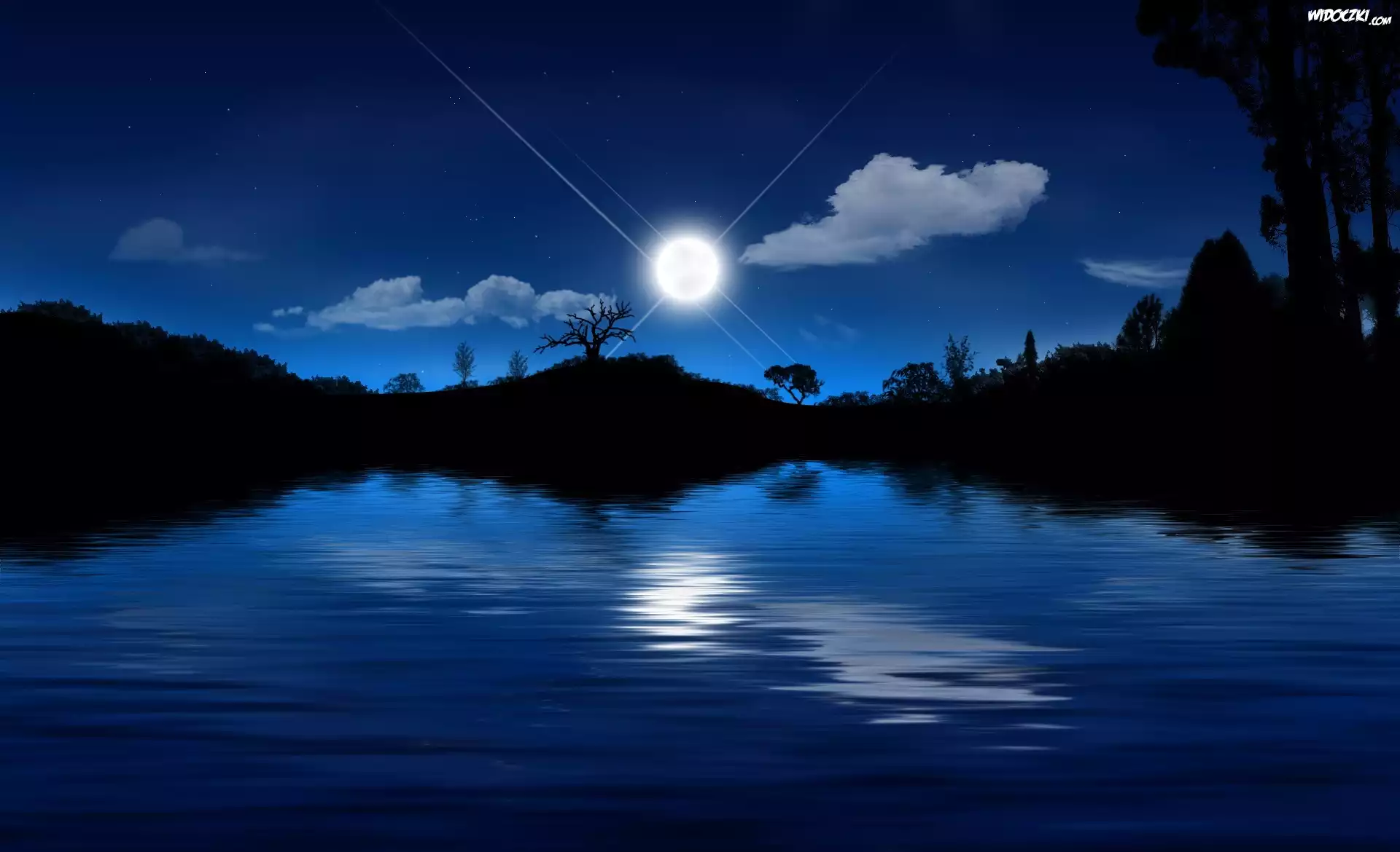 Zdjęcia, Noc, Jezioro, Księżyc, Gwiazdy, Odbicie