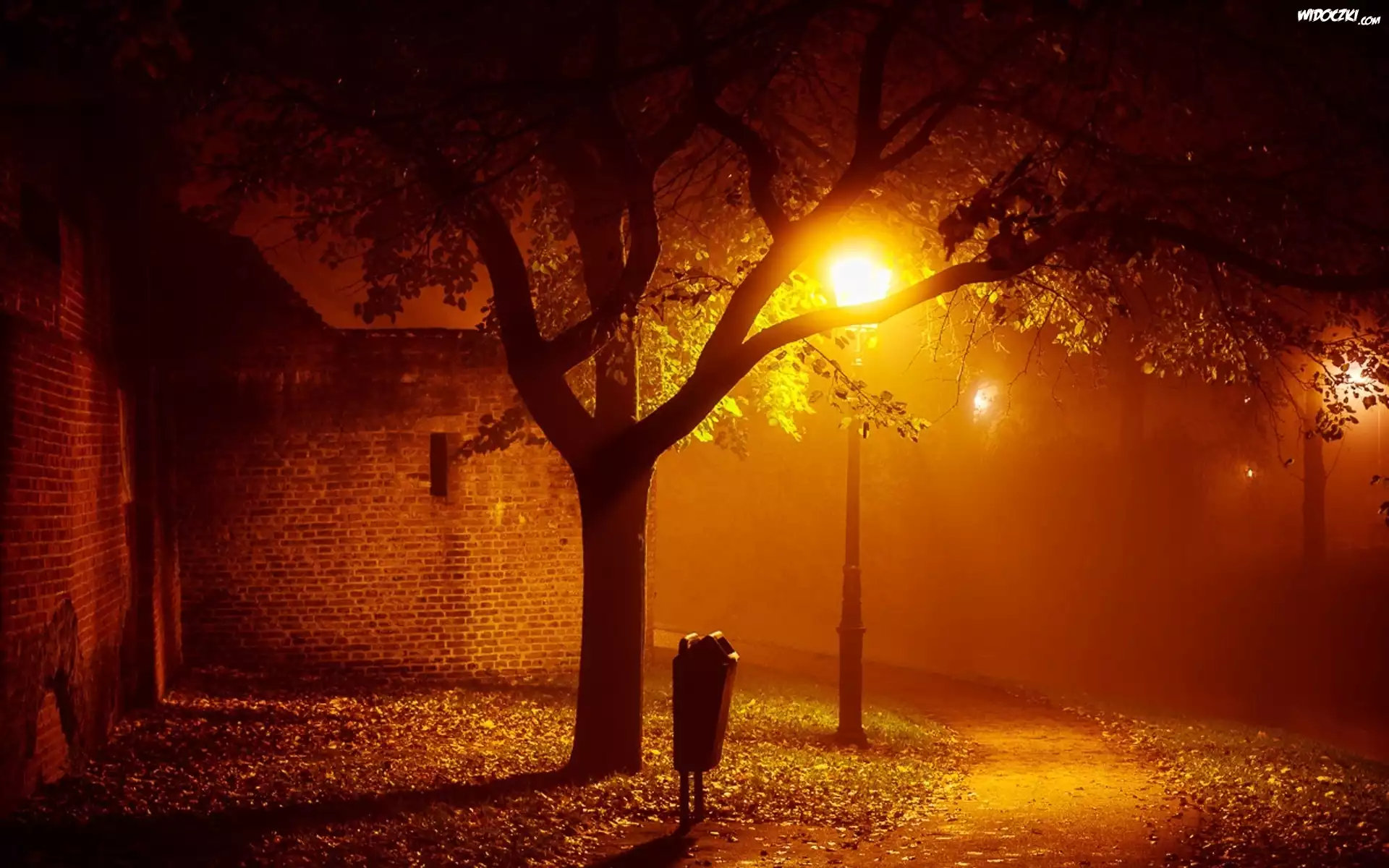 Zdjęcia, Noc, Park, Jesień, Latarnie, Ścieżka
