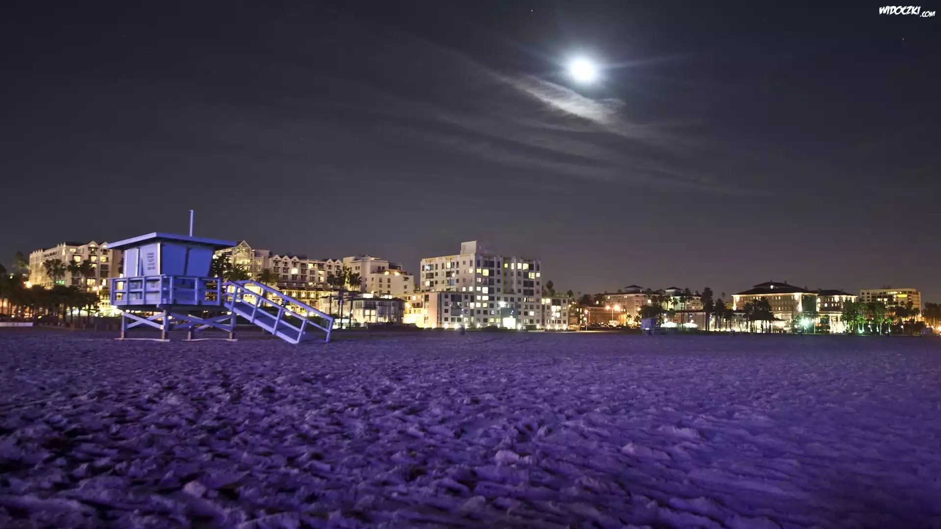 Zdjęcia, Stany Zjednoczone, Los Angeles, Plaża, Santa Monica, Domy, Noc