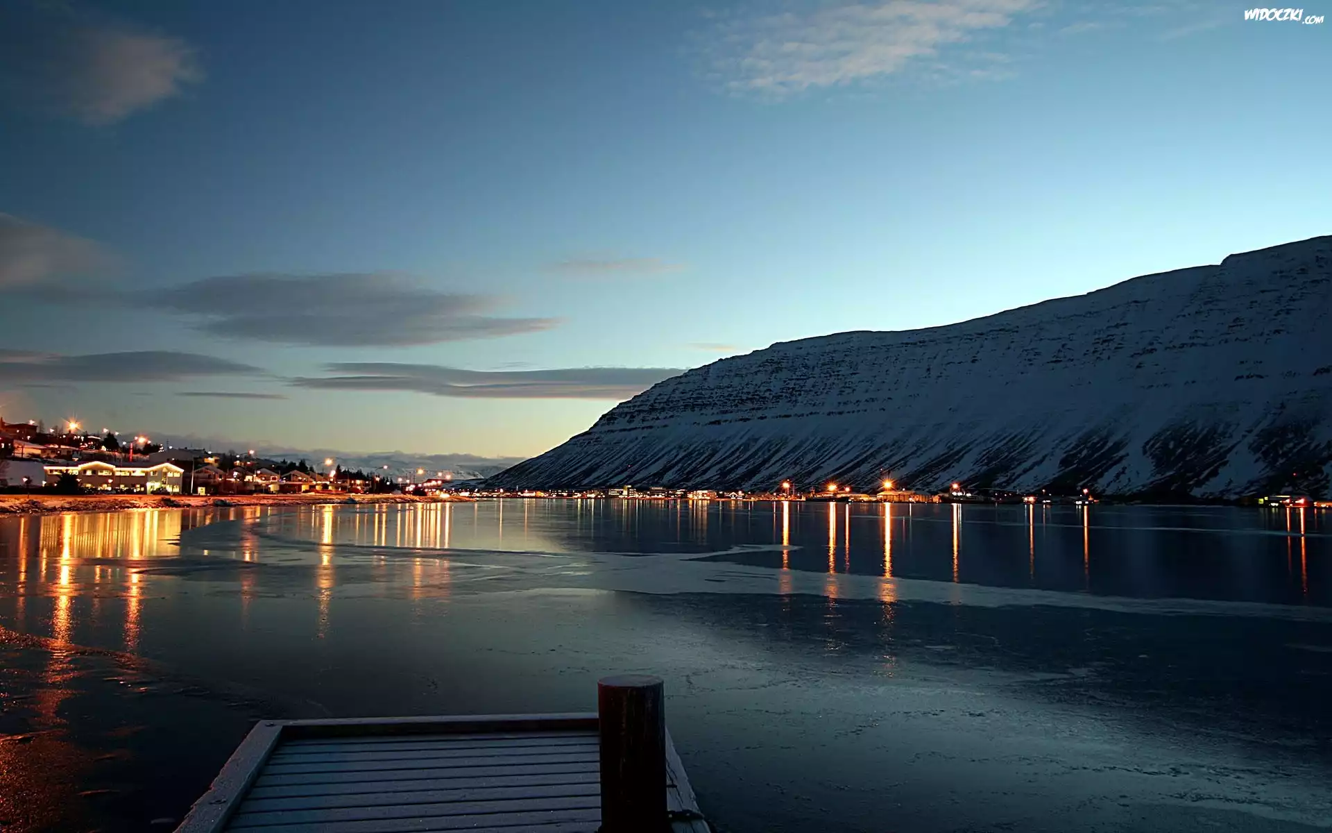 Zdjęcia, Noc, Oświetlone, Miasto, Woda