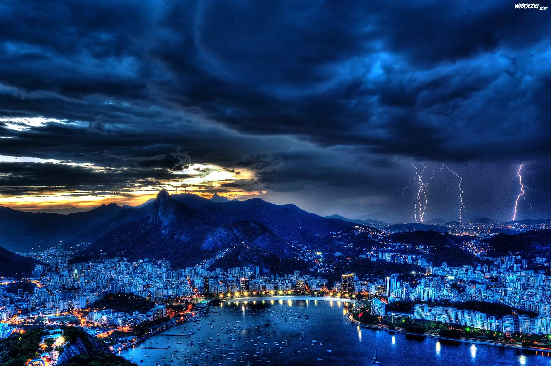 Zdjęcia, Rzeka, Góry, Panorama, Miasta, Rio de Janerio, Chmury, Noc