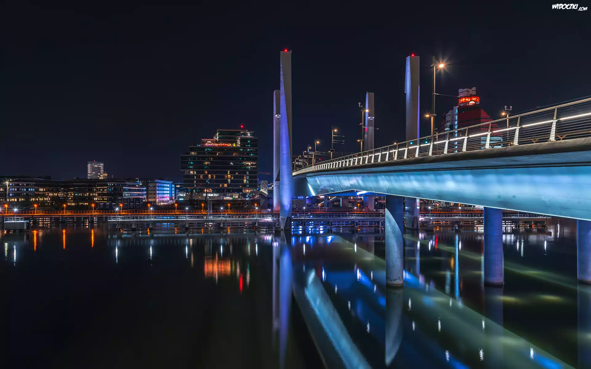 Zdj臋cia, Rzeka, Most, Domy, Noc