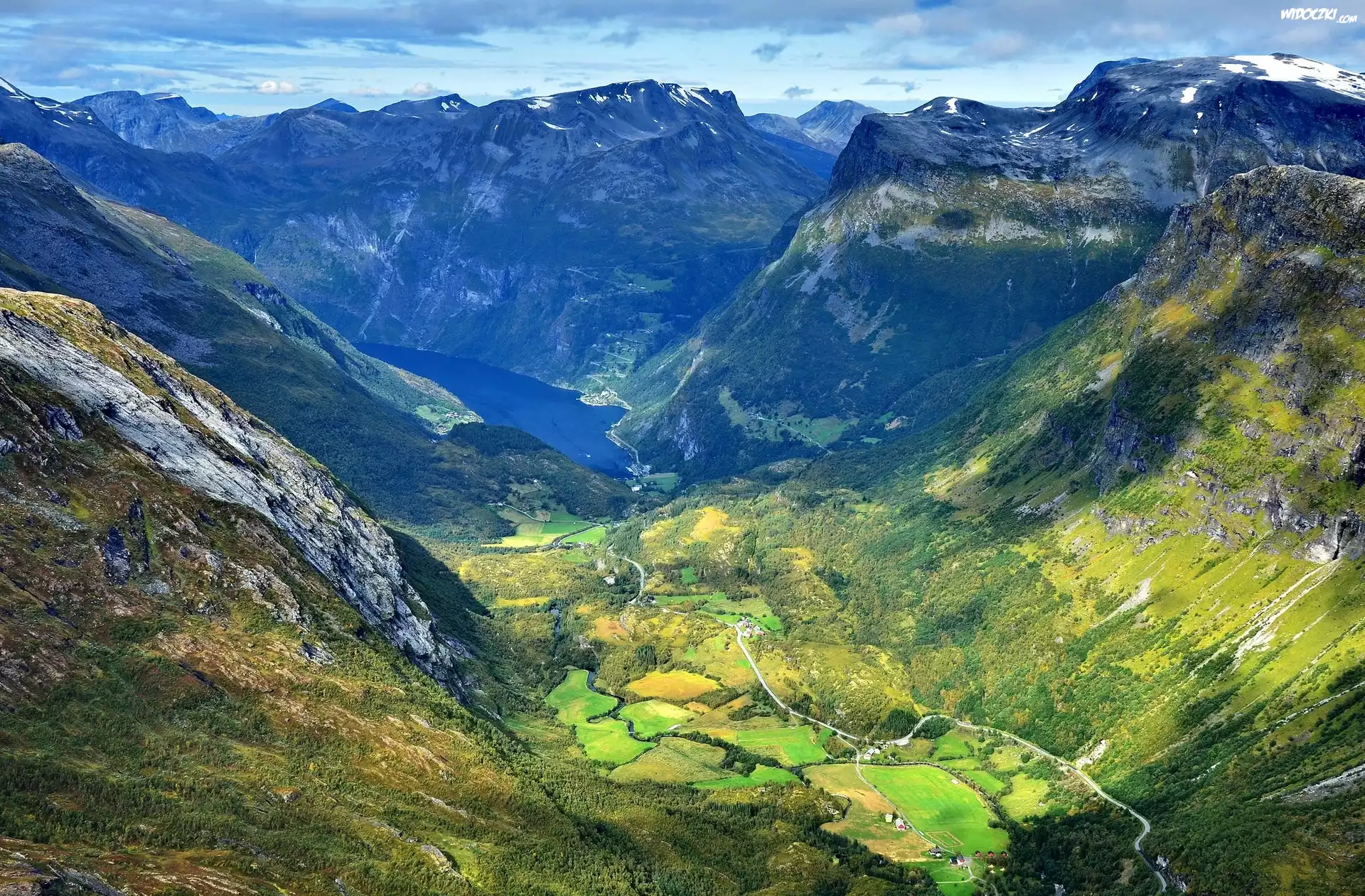 Zdjęcia, Norwegia, Fiord Geirangerfjord, Góry, Dolina, Drogi