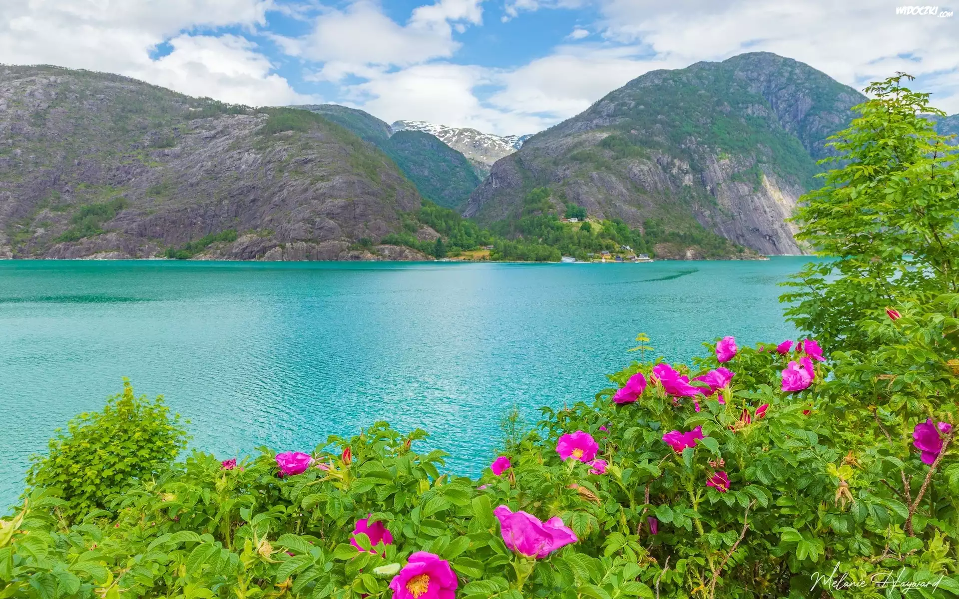 Zdjęcia, Norwegia, Park Narodowy Folgefonna, Fiord, Akrafjorden, Góry, Roślinność, Kwiaty