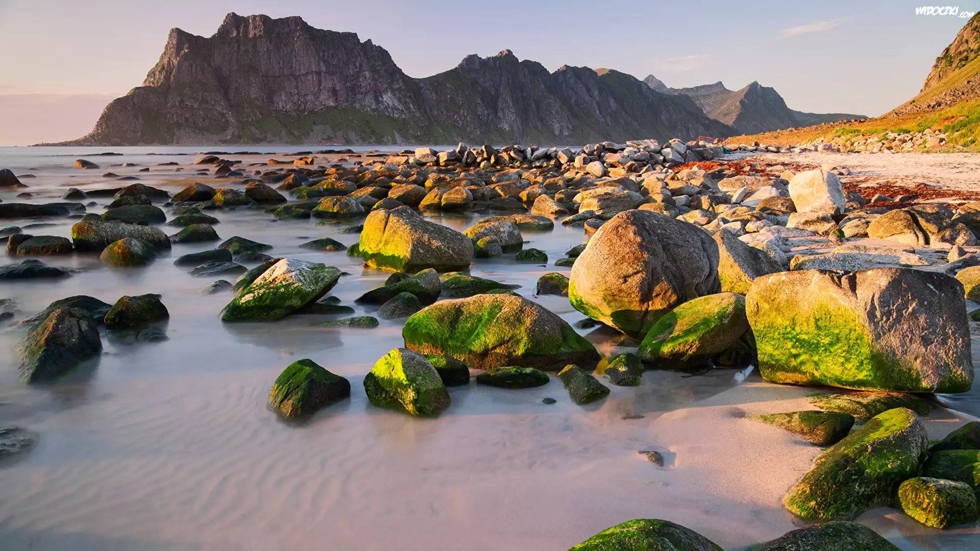 Norwegia, Lofoty, Wybrzeże, Góry, Kamienie