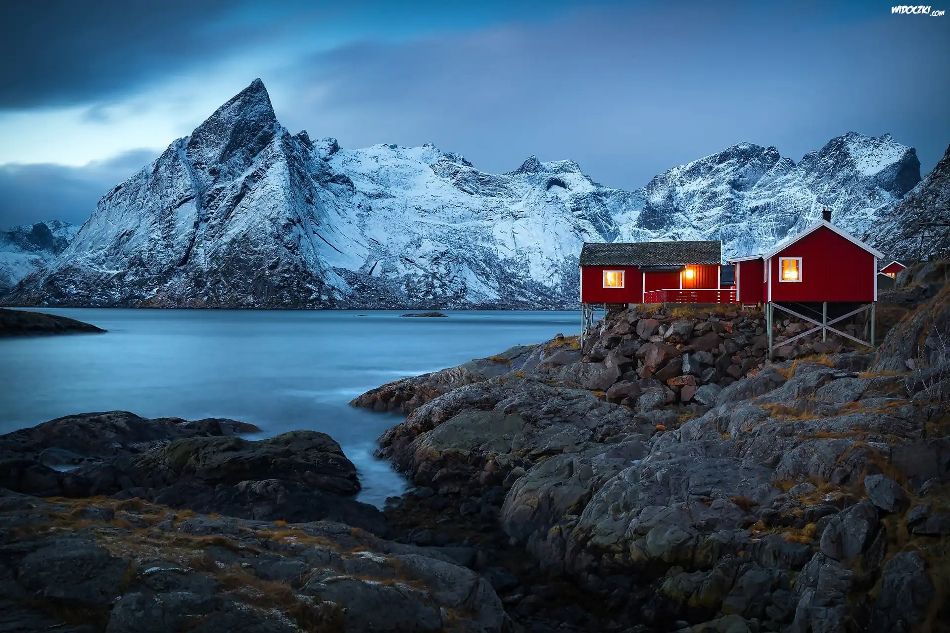 ZdjÄ™cia, Norwegia, Lofoty, Wyspa Moskenesøya, Wioska Hamnøy, Domy, Góry, SkaÅ‚y
