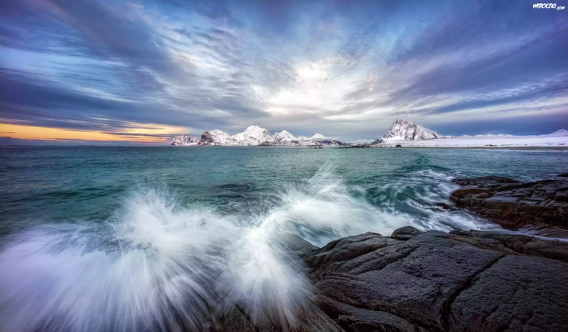 Zdjęcia, Norwegia, Lofoty, Morze, Skały, Rozbryzgująca, Woda
