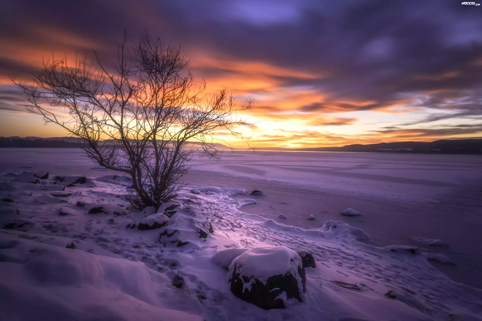 Zdjęcia, Norwegia, Zima, Śnieg, Wschód słońca