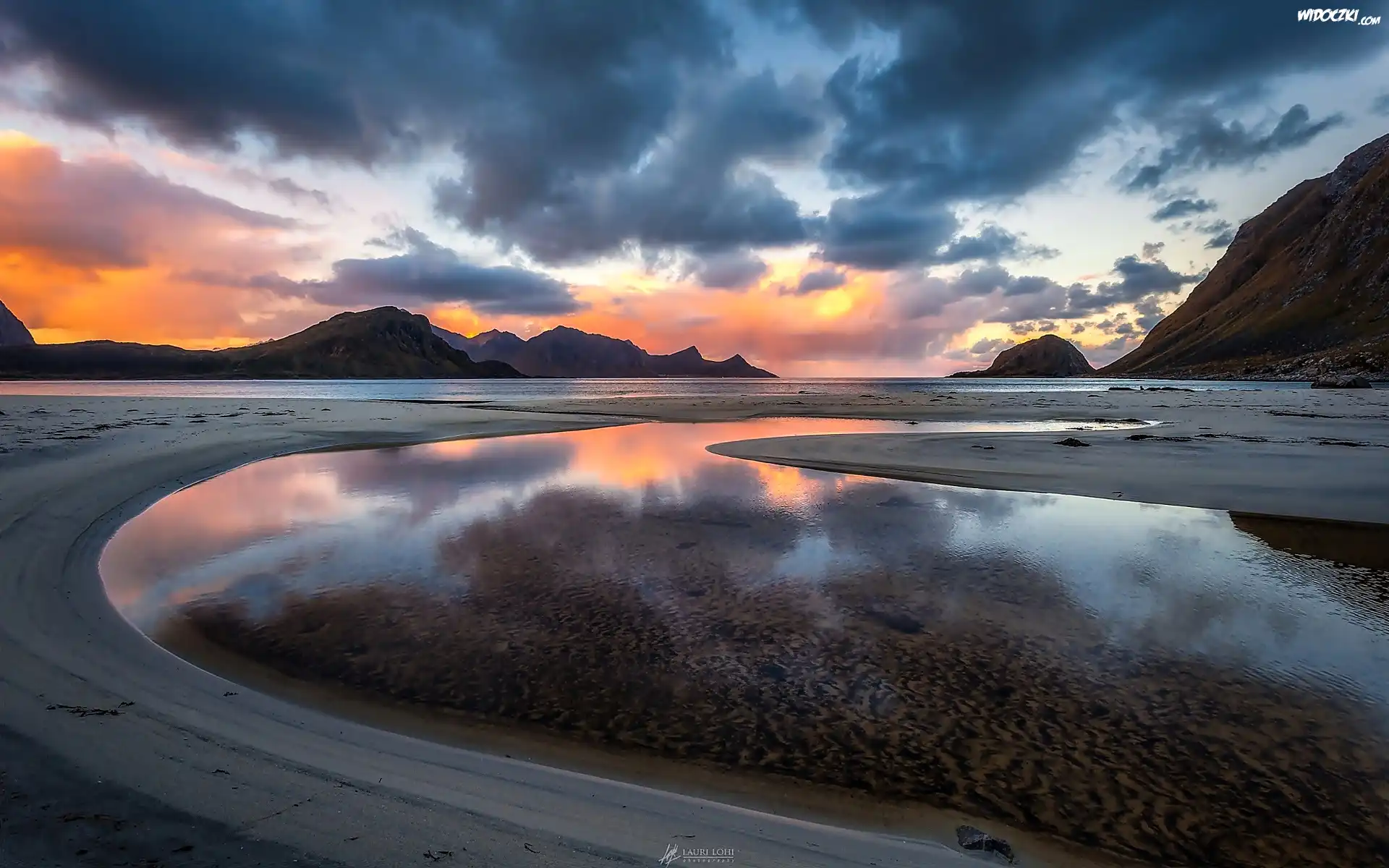 Zdjęcia, Norwegia, Morze, Chmury, Zachód słońca