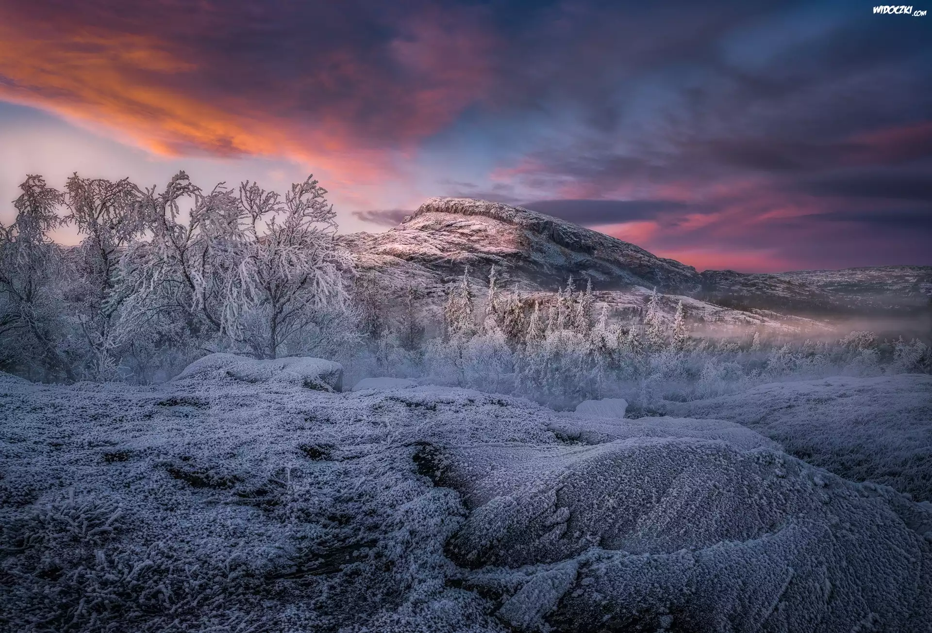 Norwegia, Góry, Szadź, Zima, Drzewa