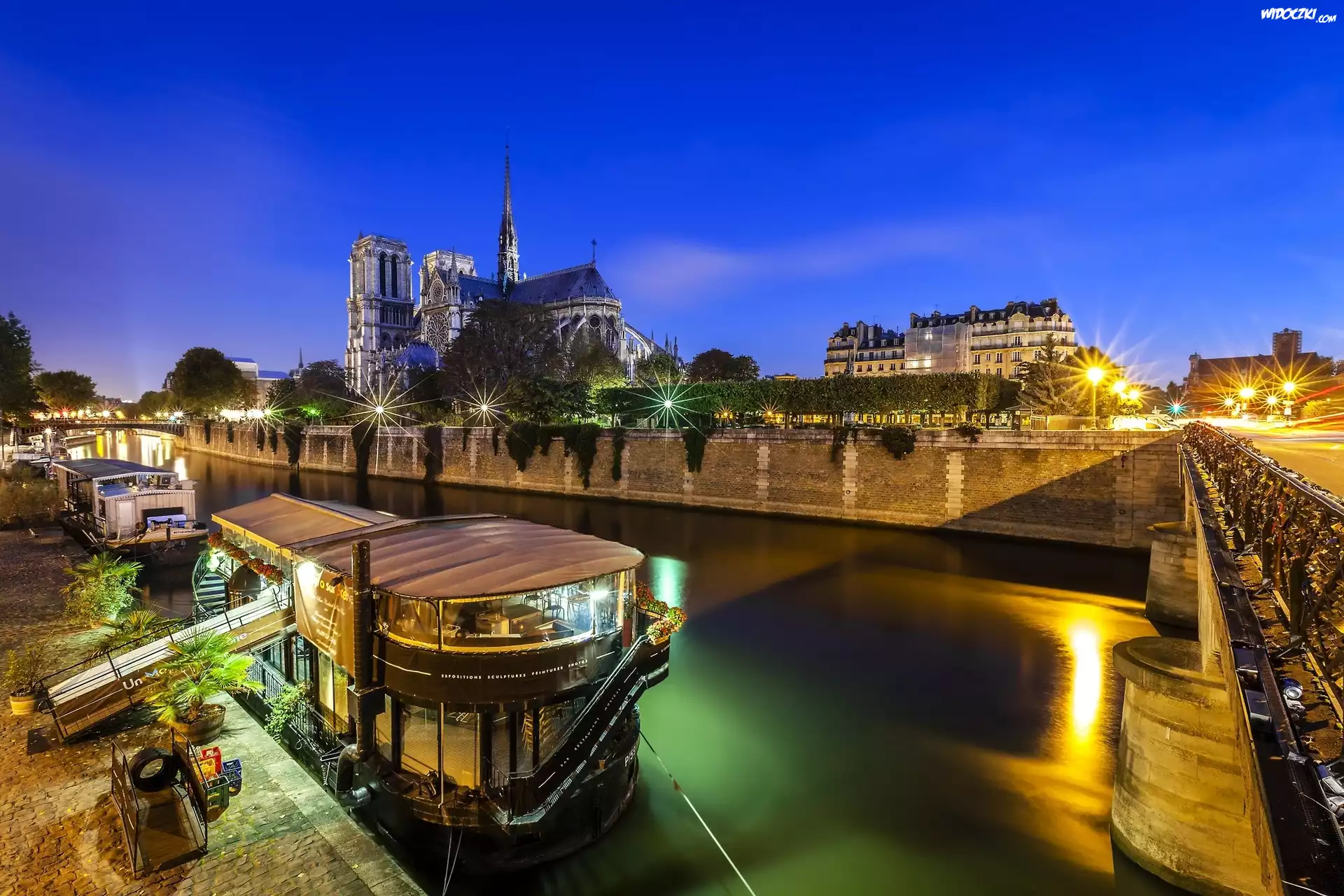 Notre Dame, Paryż, Rzeka, Most, Latarnie