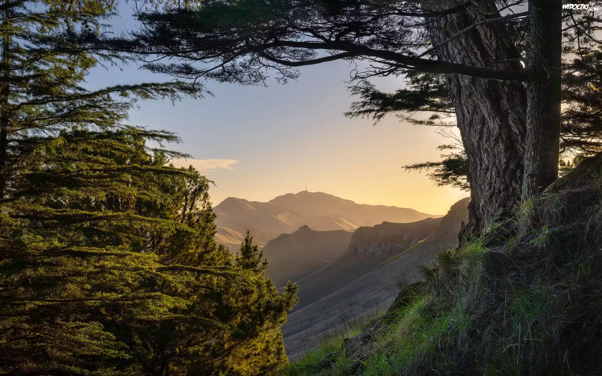 Nowa Zelandia, Te Mata Park, Góry, Mount Erin, Drzewa, Sosny