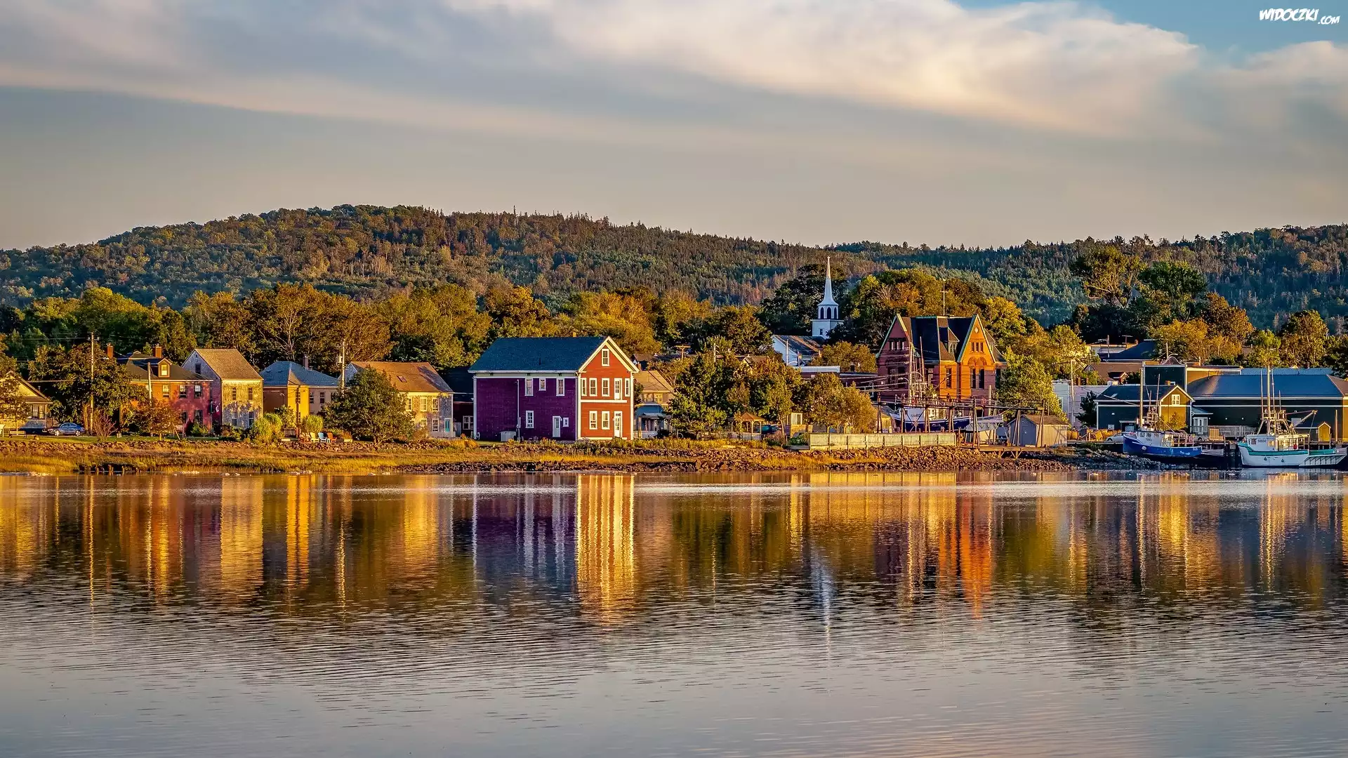 Góry, Domy, Rzeka, Annapolis River, Miasto, Annapolis Royal, Prowincja, Nowa Szkocja, Kanada