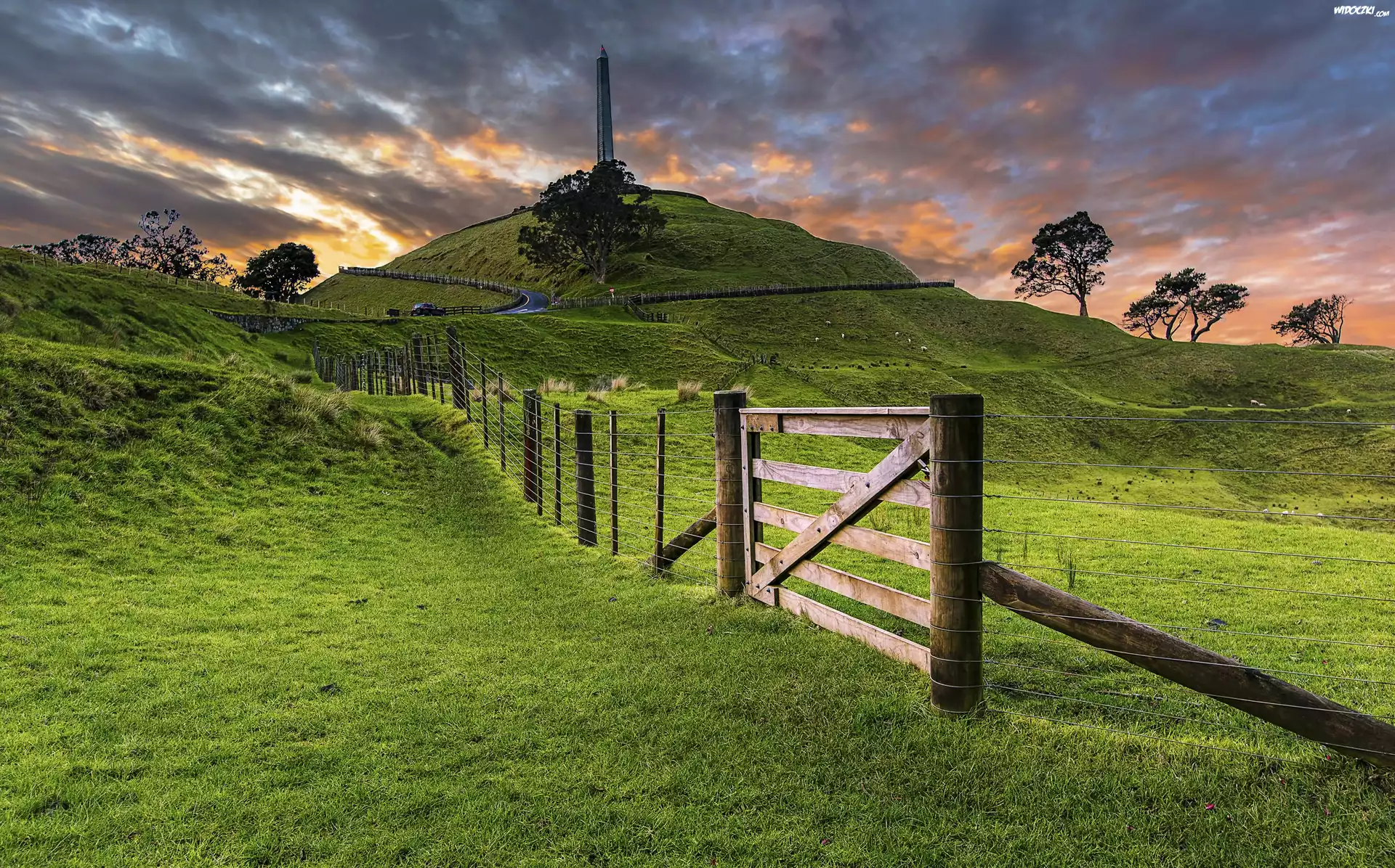 Nowa Zelandia, Auckland, Łąki, Trawa, Płot