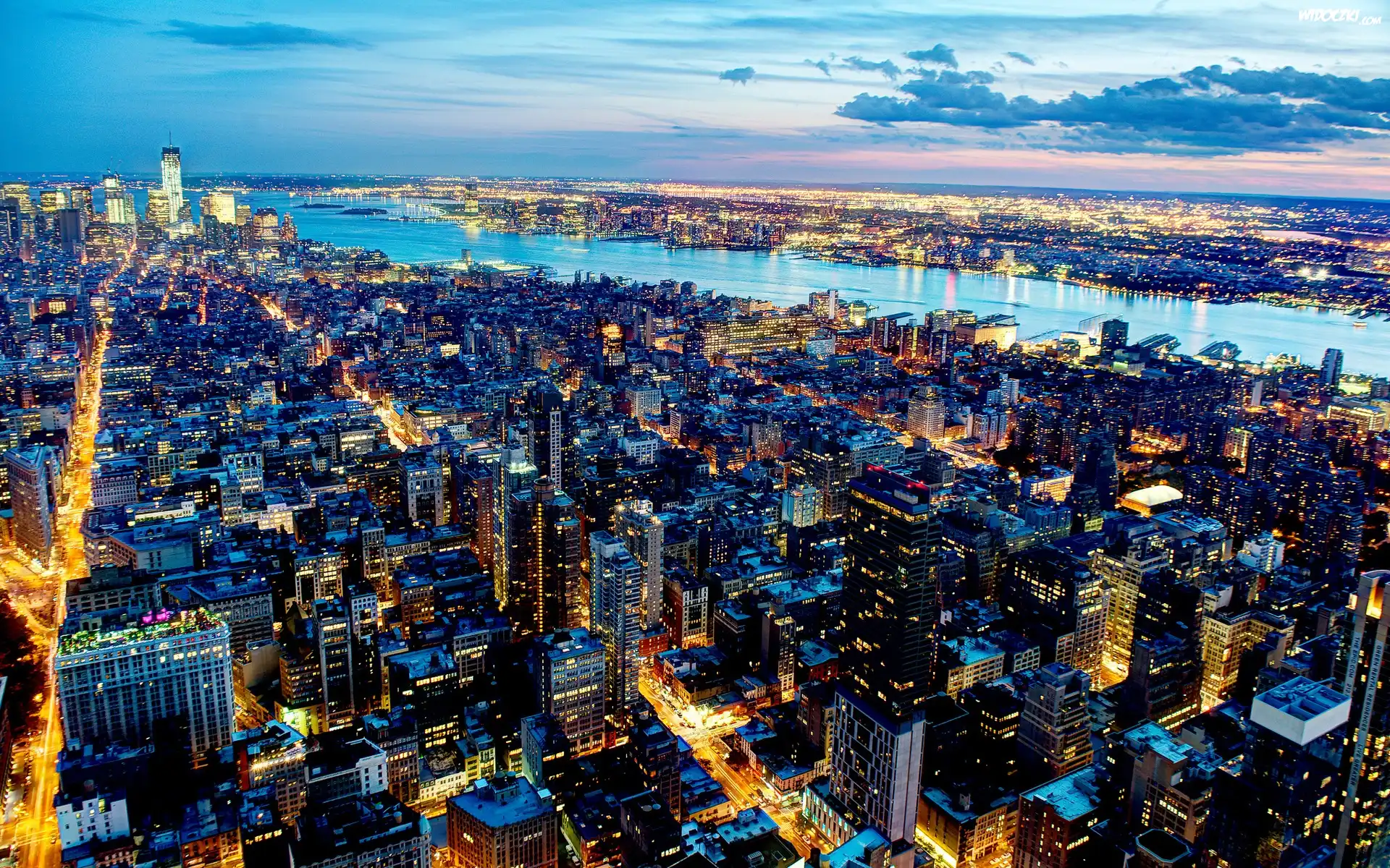 Nowy, Jork, Rzeka, Panorama, Miasta