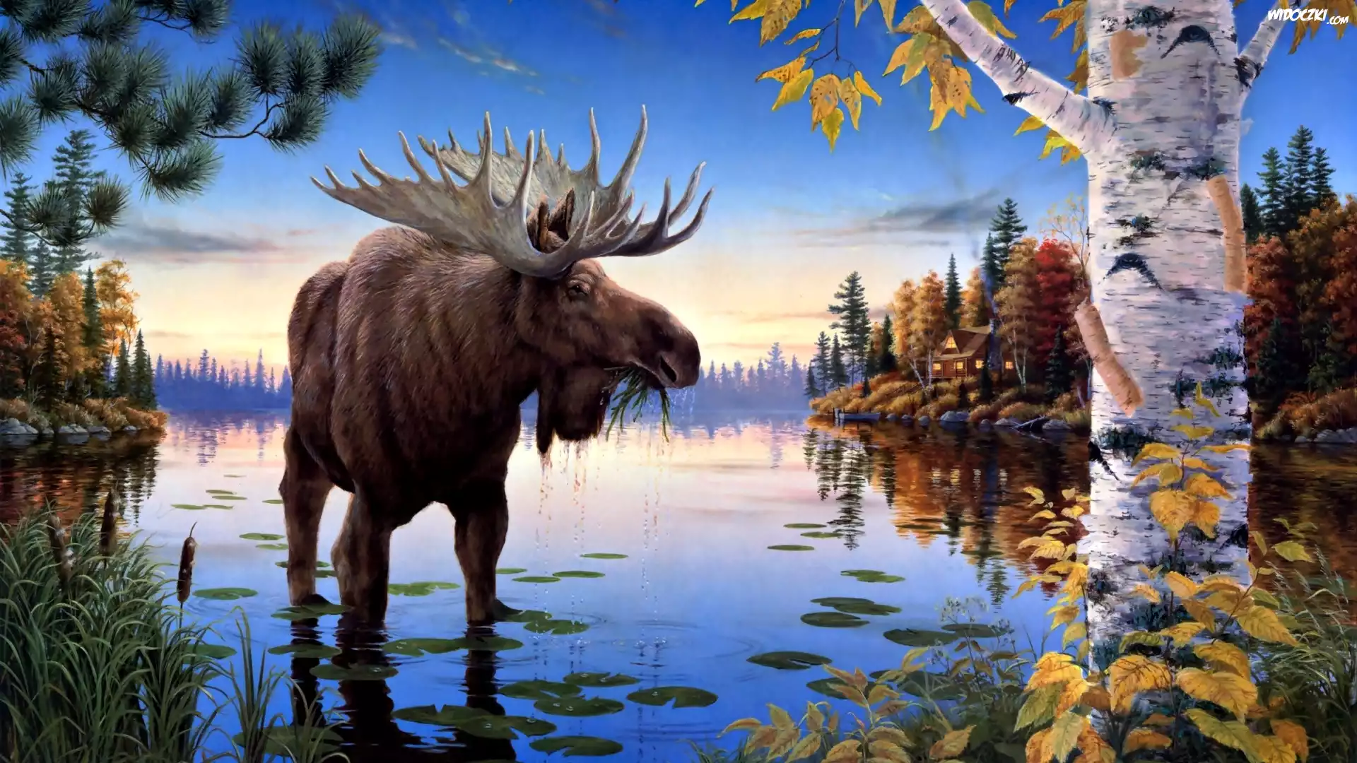 Obraz, Łoś, Jezioro, Lasy, Mark Daehlin