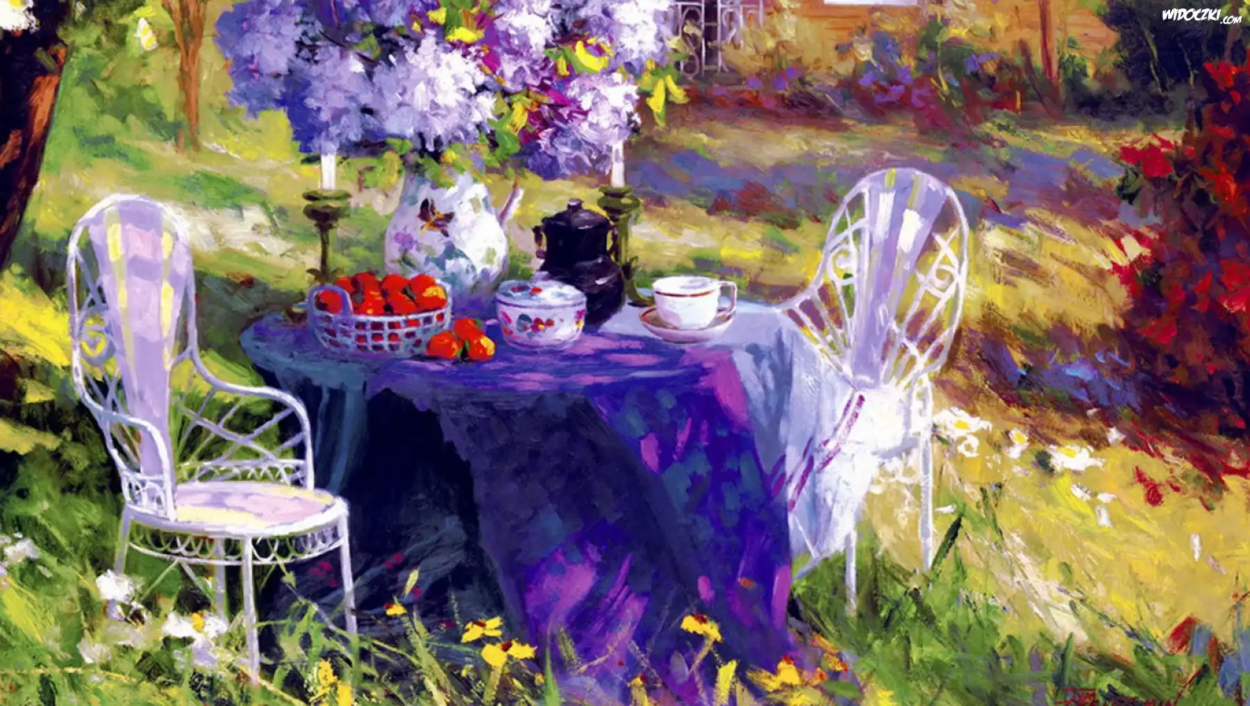 Obraz, Stół, Zastawa, Kwiaty