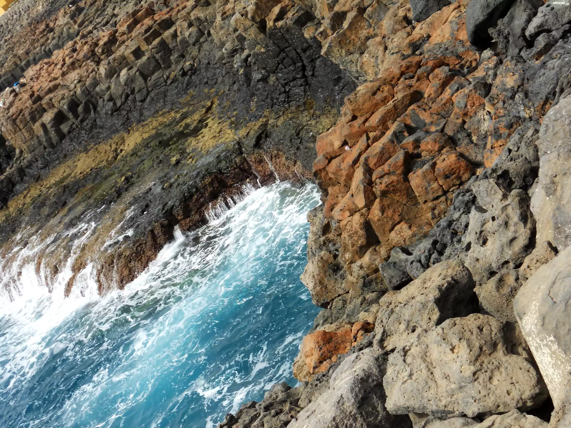 Zdjęcia, Ocean, Atlantycki, Fala, Kamienna, Plaża