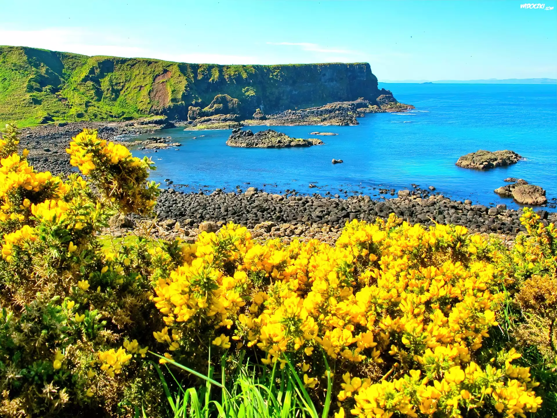 Żółte, Kwiaty, Ocean, Klif