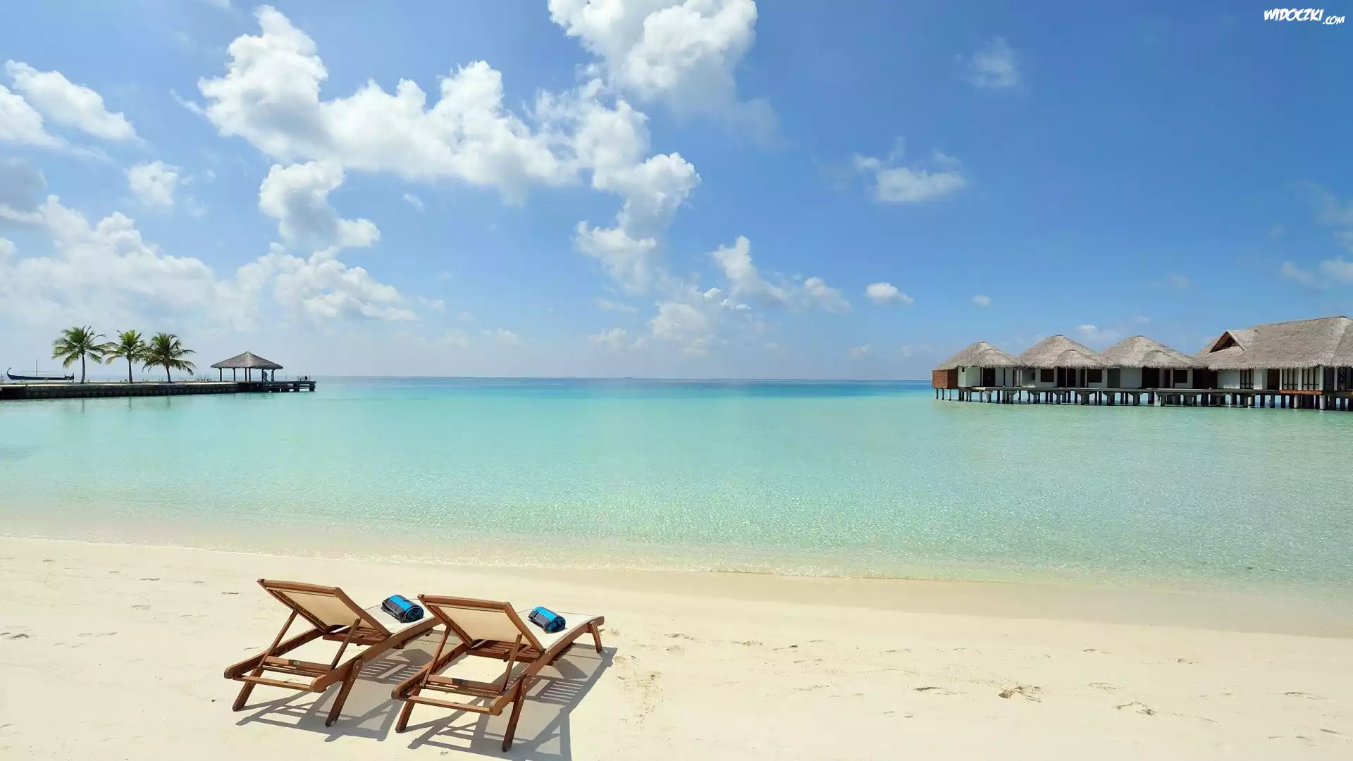 Zdjęcia, Ocean, Plaża, Leżaki, Domki, Wakacje