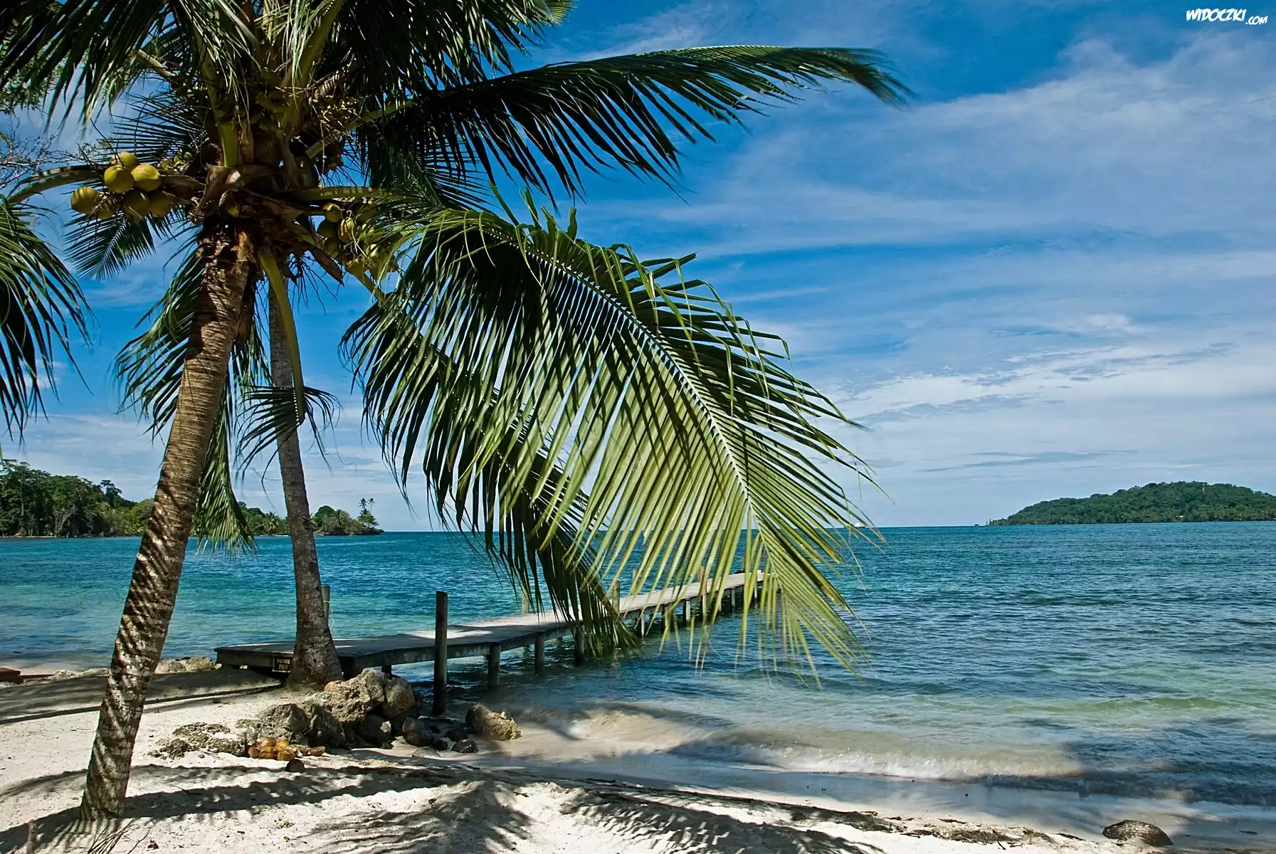 Zdjęcia, Ocean, Plaża, Pomost, Palma, Tropik