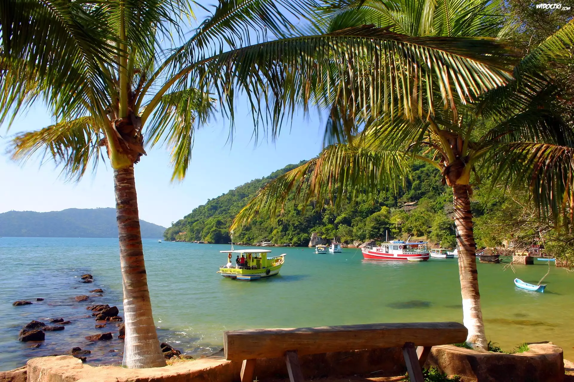 Zdjęcia, Ocean, Ztoka, Góry, Palmy, Tropik