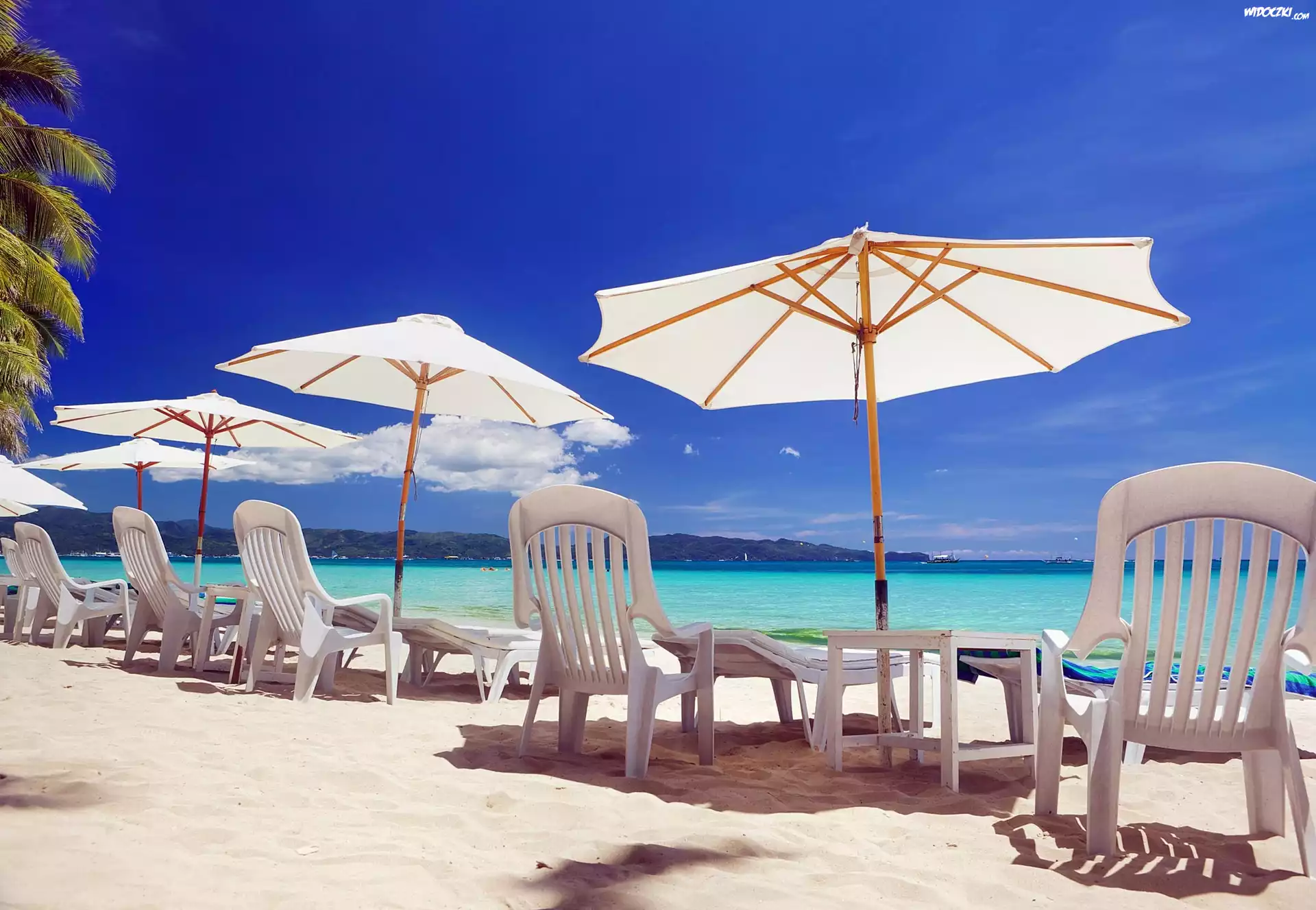 Zdjęcia, Ocean, Plaża, Parasole, Tropiki, Wakacje