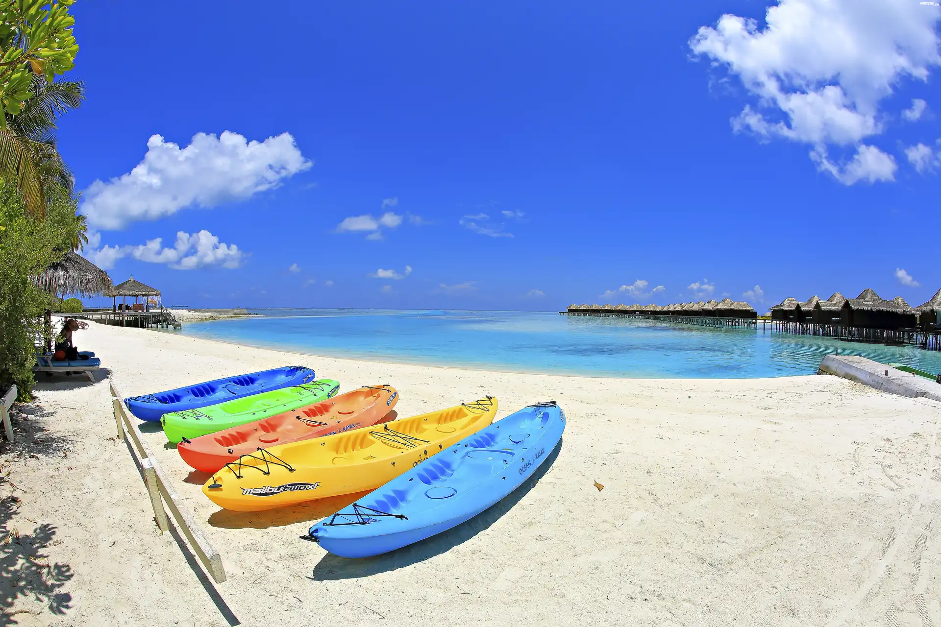 Zdjęcia, Ocean, Łódki, Plaża, Malediwy