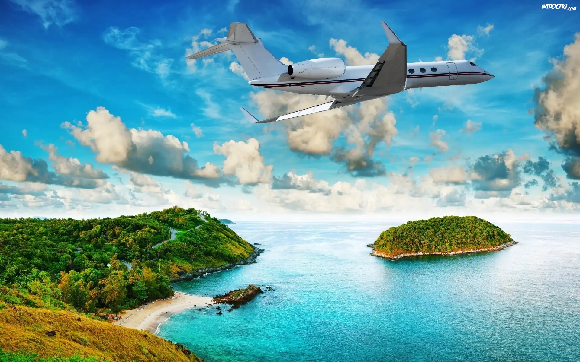 Zdjęcia, Ocean, Wyspy, Samolot, Chmury