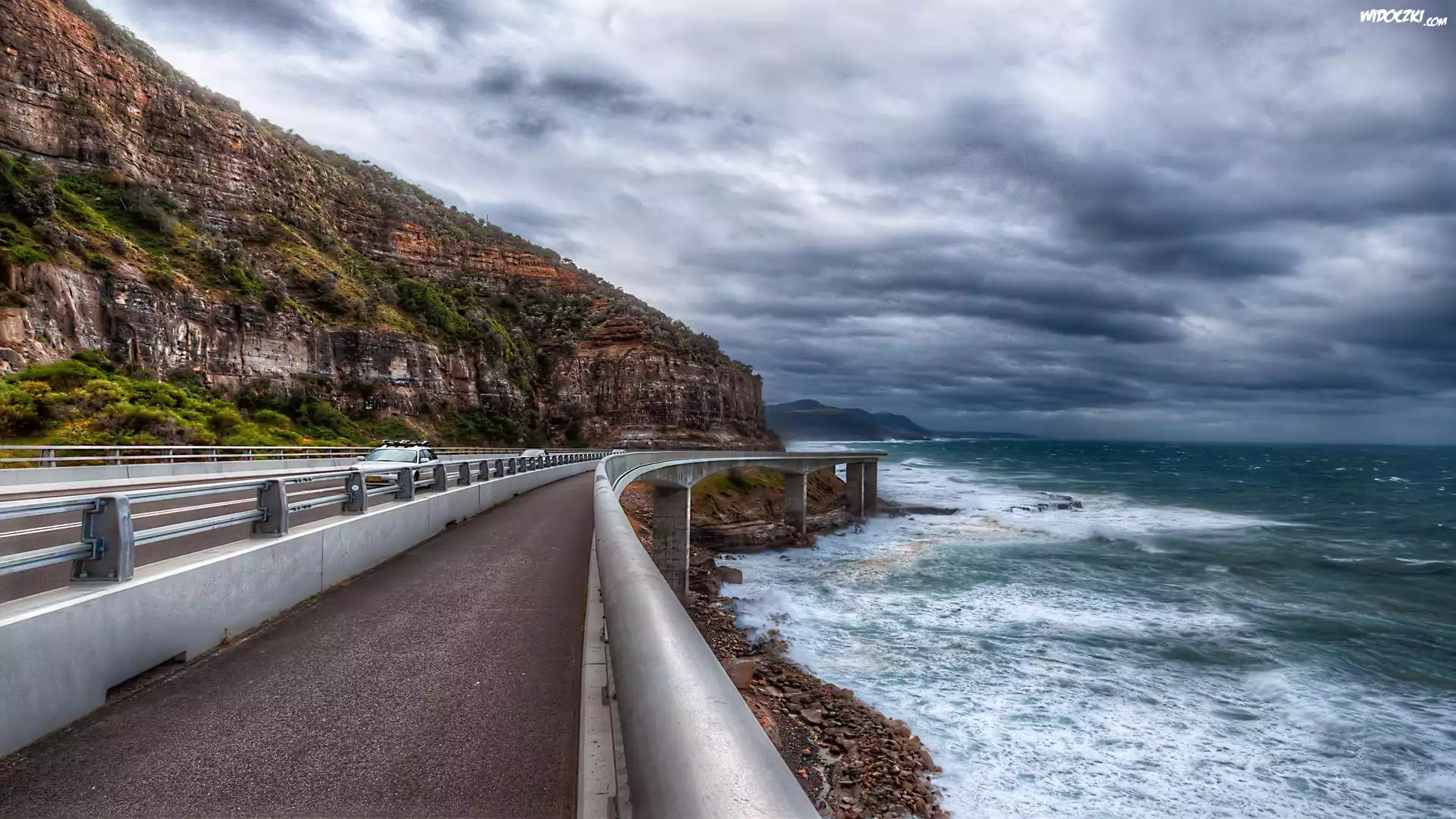 Zdjęcia, Ocean, Chmury, Wybrzeże, Droga