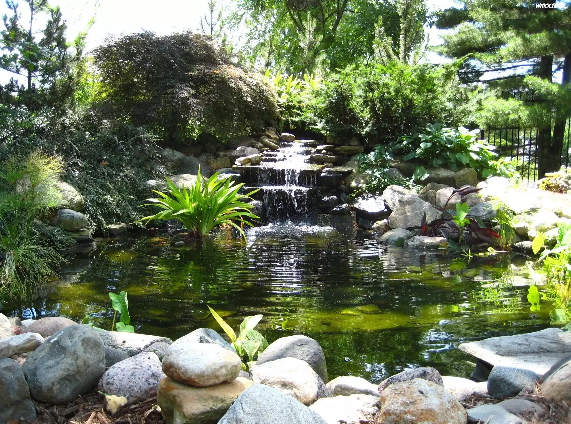 Zdjęcia, Oczko, Wodne, Kamienie, Drzewa, Rośliny