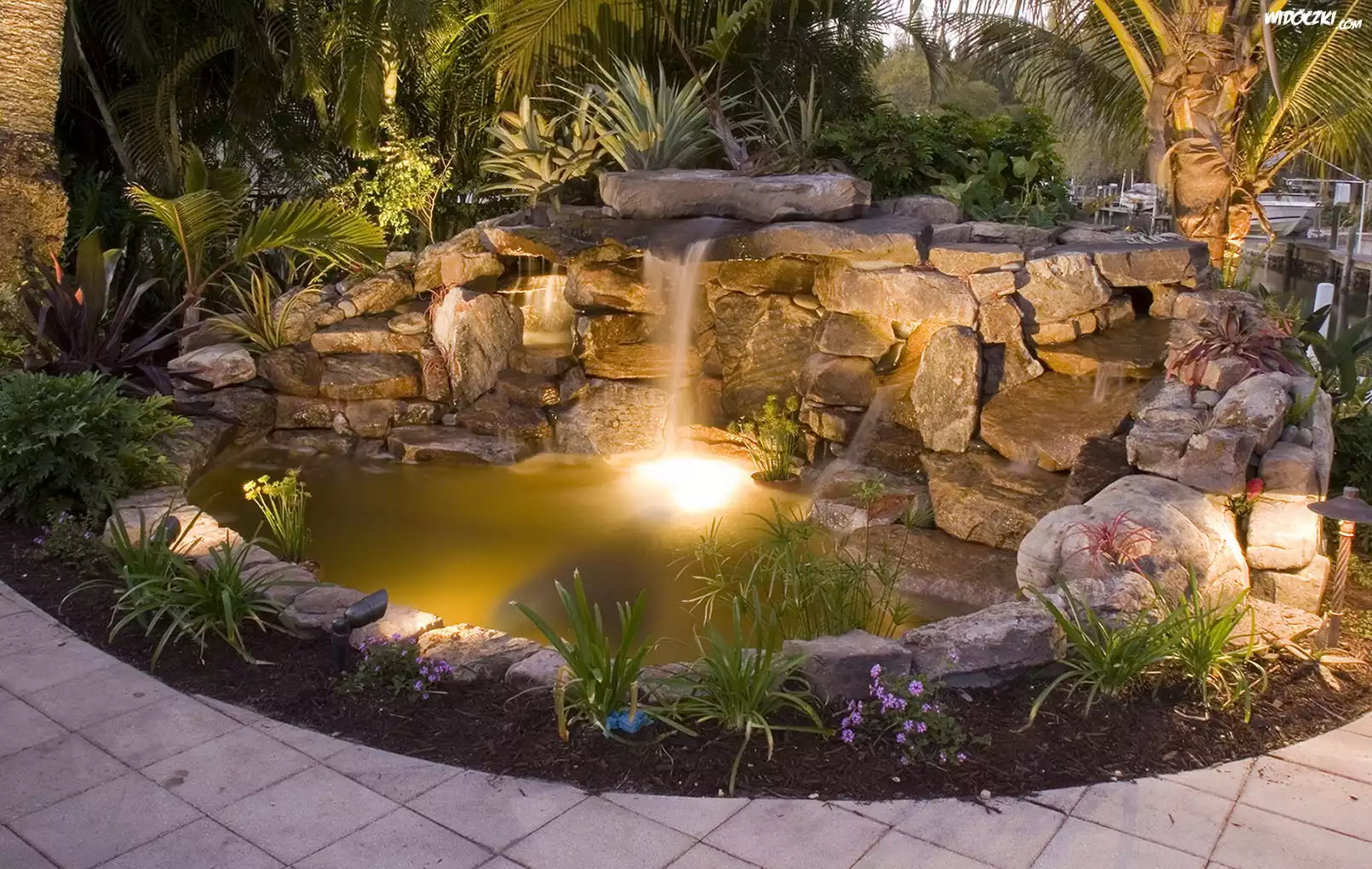 Zdjęcia, Oczko, Wodne, Kamienie, Rośliny, Oświetlenie