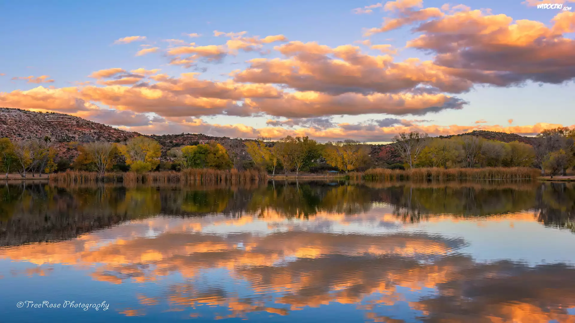 Zdjęcia, Drzewa, Jezioro, Chmury, Odbicie
