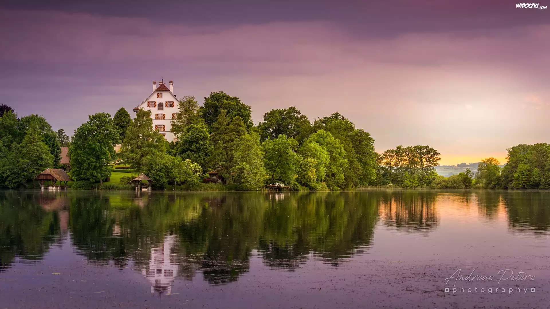 Zdjęcia, Jezioro, Drzewa, Dom, Odbicie