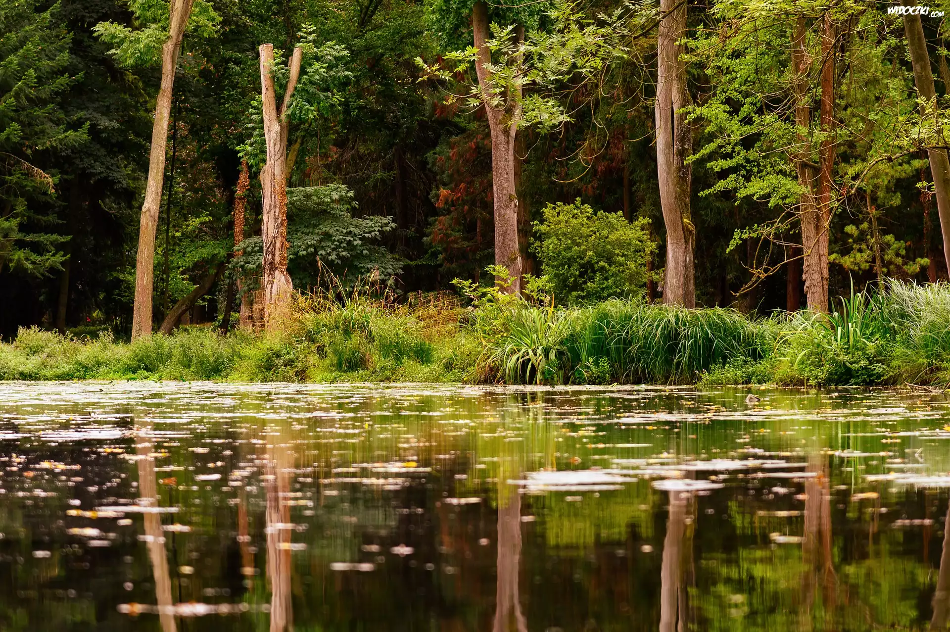 Zdjęcia, Jezioro, Drzewa, Las, Odbicie