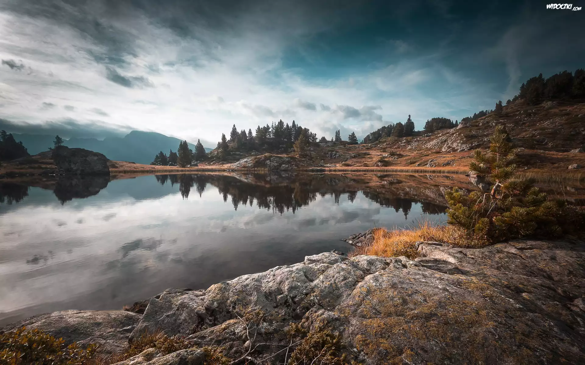 Jezioro Lac Achard, Skały, Odbicie, Ośrodek Chamrousse, Miejscowość Livet et Gavet, Departament Isere, Francja |