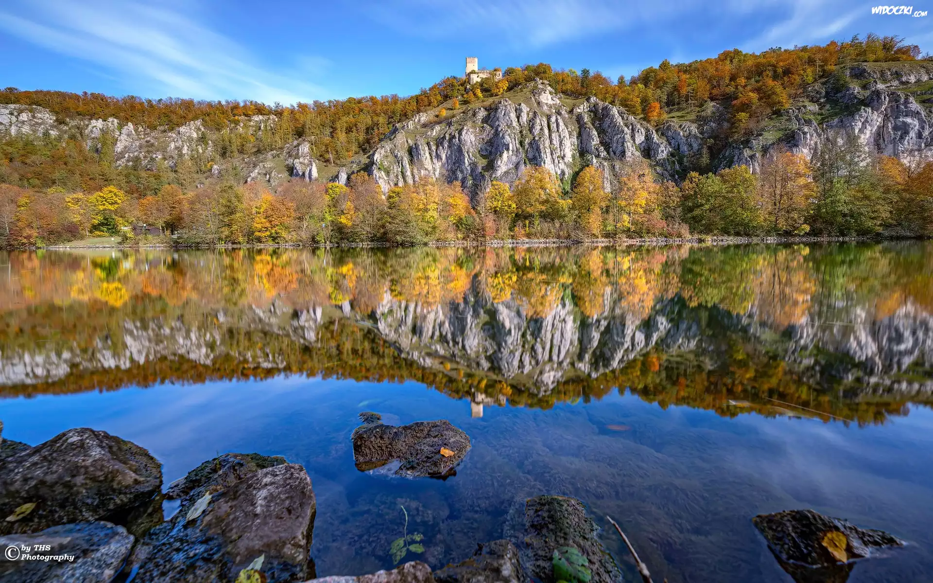 Zdjęcia, Rzeka, Skały, Drzewa, Odbicie