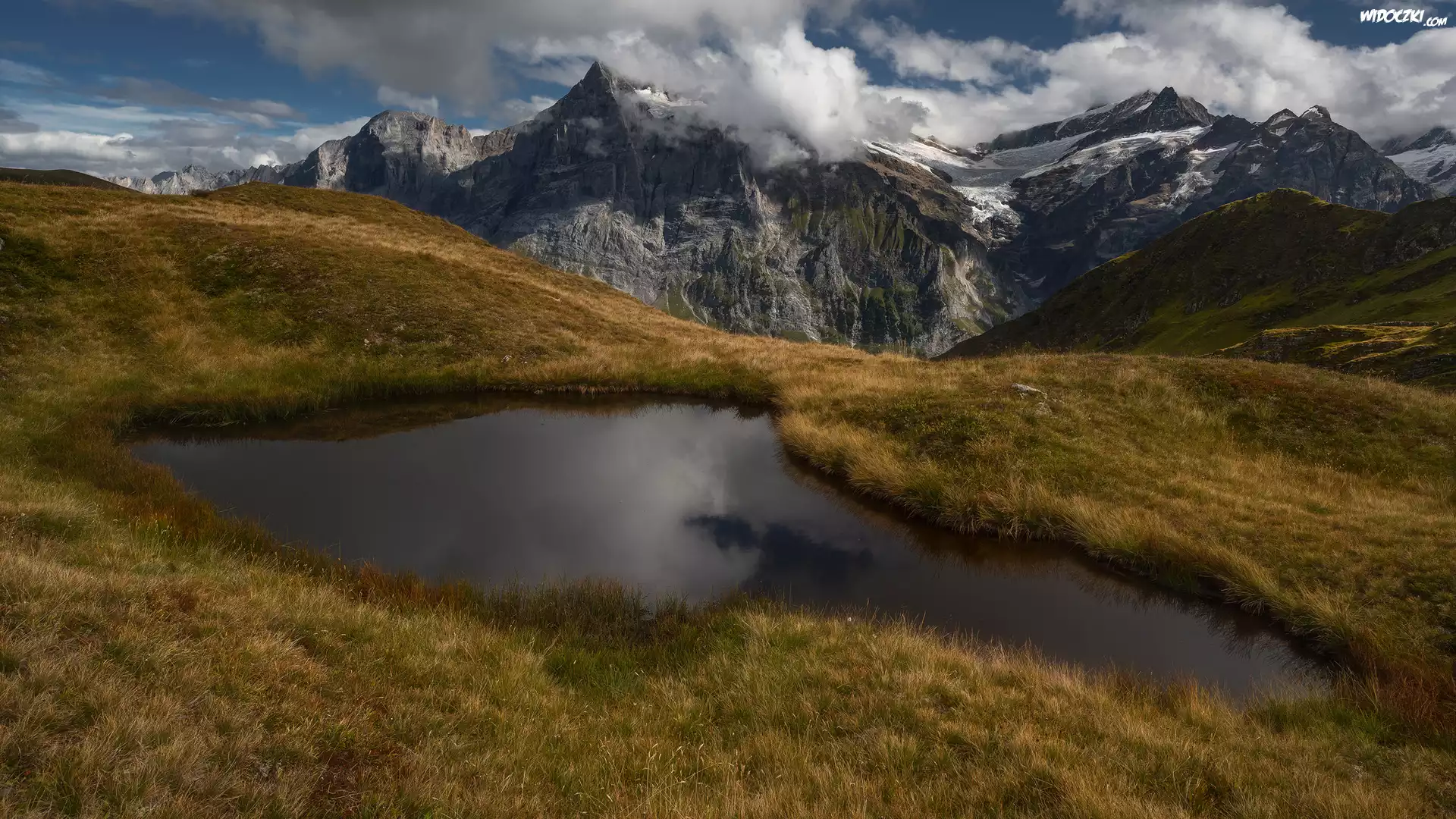 Zdjęcia, Staw, Góry, Chmury, Odbicie