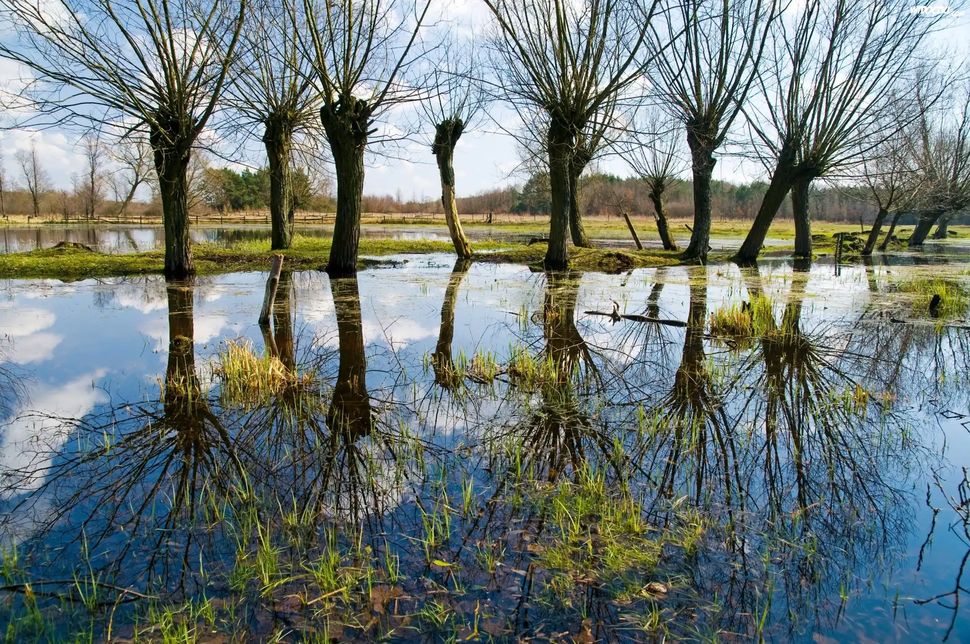 Zdj臋cia, Wierzby, Odbicie, Rozlewisko