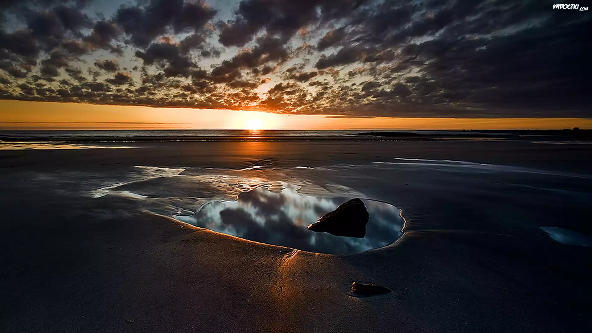 Odbicie, Lustrzane, Plaża, Zachód, Słońca