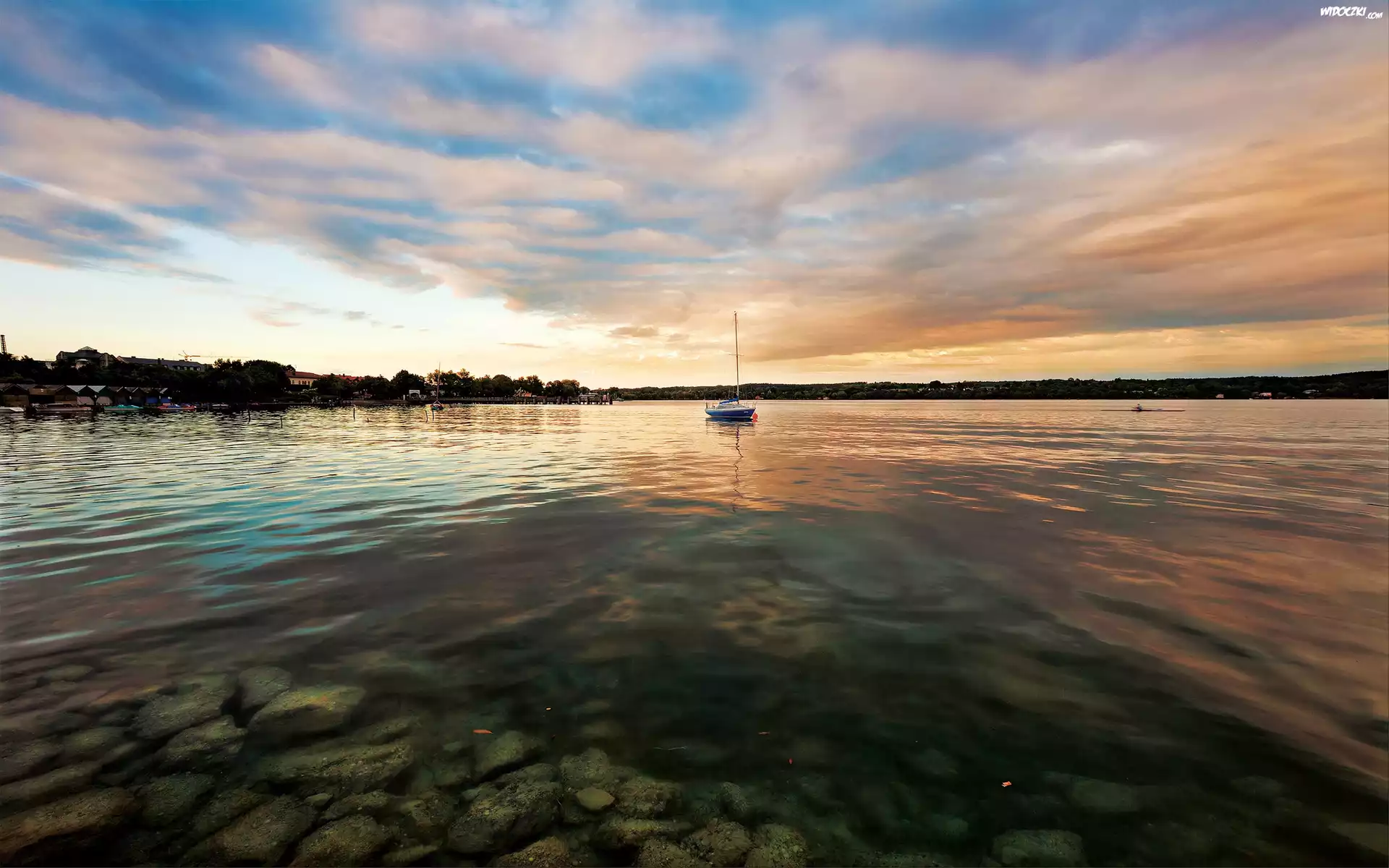 Zdjęcia, Jezioro, Łódka, Chmury