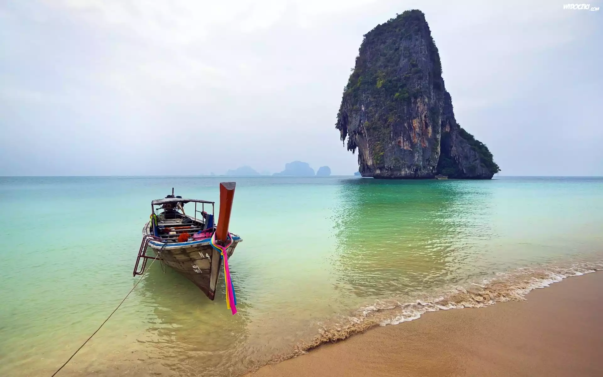 Zdjęcia, Łódź, Na,m Plaży, Skała, Mgła