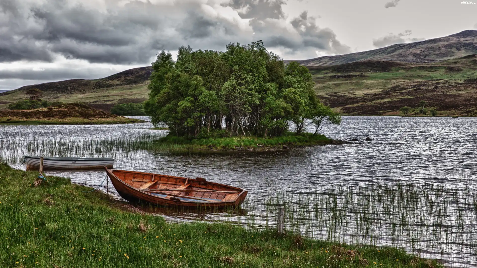 Zdjęcia, Rzeka, Łodzie, Drzewa