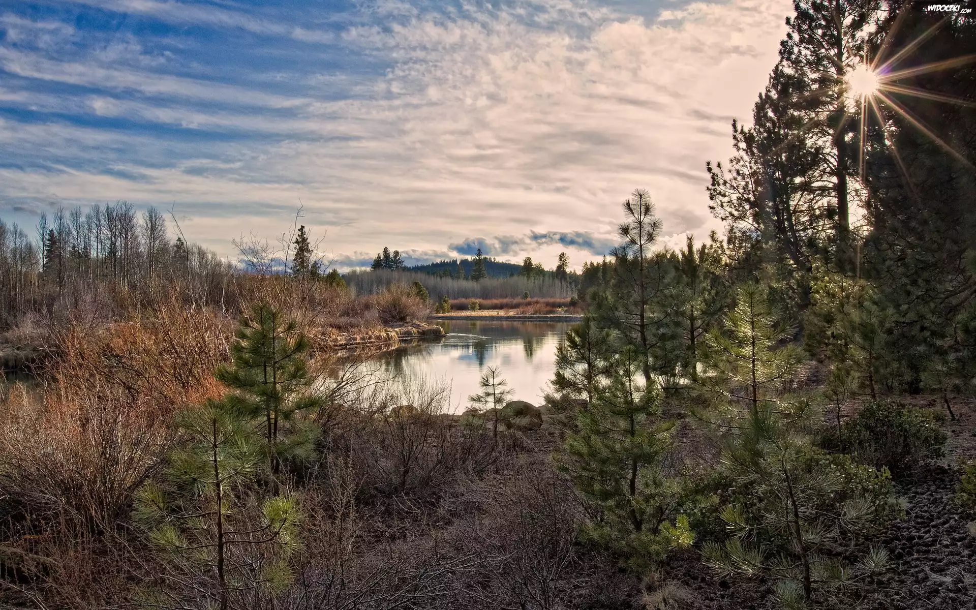 Ogołocony, Las, Jezioro, Promienie Słońca