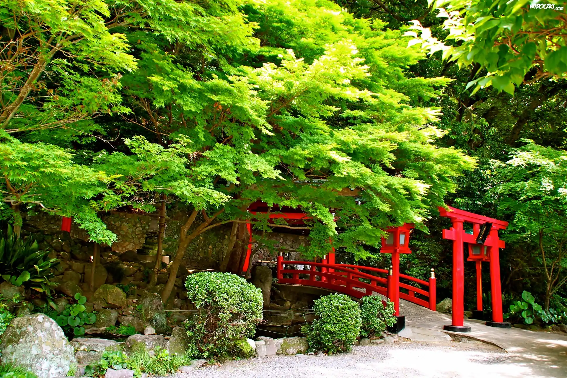 Ogród, Japoński, Czerwony, Mostek