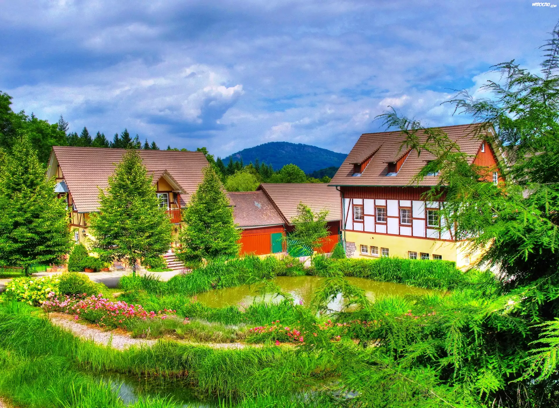 Zdjęcia, Domy, Ogród, Staw