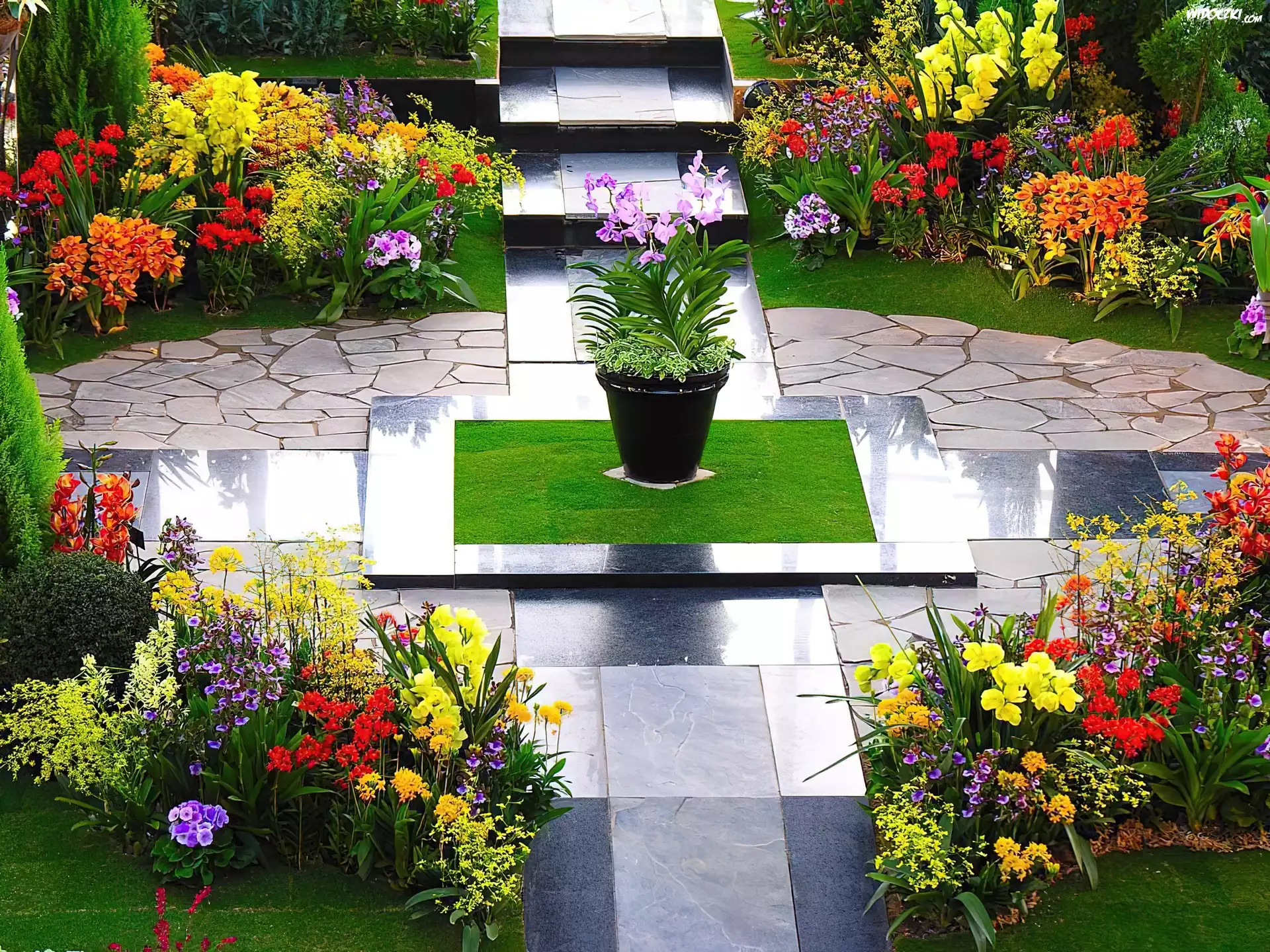 Zdjęcia, Ogród, Kwiaty, Donica, Marmur