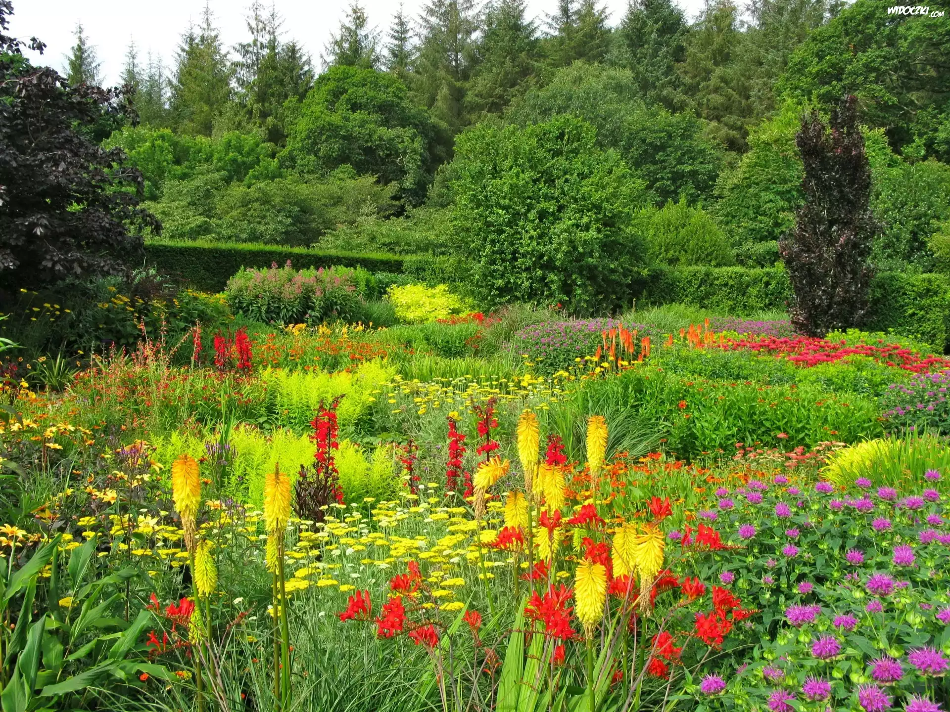 Zdjęcia, Ogród, Park, Angielski, Kwiaty, Drzewa, Krzewy